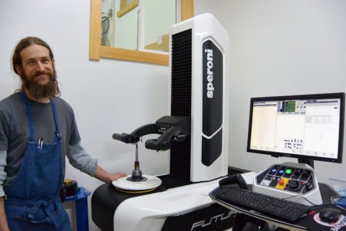 The Speroni FUTURA is built with Heidenhain scales, Schneeberger guideways, and a rotating spindle that offers 1 μm concentricity and TIR at 300 mm of less than 5 μm.