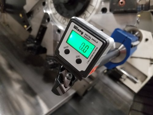 Anyone who’s ever struggled to get a boring bar exactly on center will appreciate the fact that setup is extremely easy. “There’s a reference flat on the top of the head that accommodates a visual angle finder,” Eichelberger pointed out. “You just rotate the bar until the indicator reads zero, then clamp it in place.”