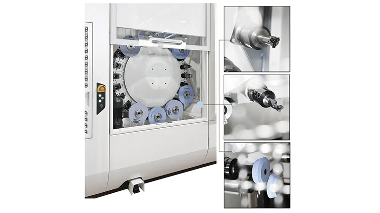 The Mägerle MFP grinder features automatic tool changing. RFID chips ensure the right tool goes into the spindle.