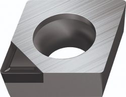 Iscar USA, Arlington, Texas, also makes PCD tools but has now added a new twist. Ron Crane, national product specialist for turning and threading, said Iscar worked with “a large aerospace manufacturer” to create a diamond-like coating that delivers “85 percent of the tool life of a true PCD brazed insert-type tool at a cost about 5 percent higher than carbide.” Iscar calls it “hard carbon” but does not publicize it or explain it in detail. Offered to big accounts in special cases, a typical application is automotive die-cast aluminum parts. Crane also explained that although adding a diamond coating to a carbide tool typically requires some degree of cobalt depletion in order for the diamond to grow, limiting the viable substrates, the hard carbon coating has no such limitation. It can be applied to any carbide substrate.