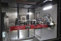 A PCI TS630V twin-spindle horizontal machines a cylinder head.(Provided by Absolute Machine Tools)