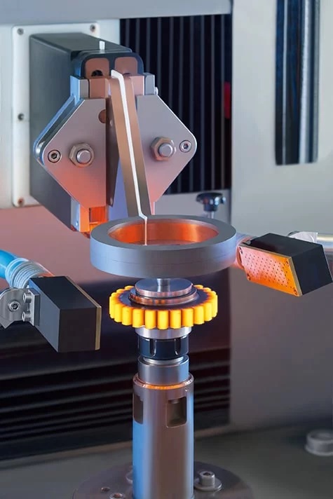 EMAG’s SDF technology hardens gears using induction in under one second. This is done right before rapid quenching and tempering, followed by hard turning and grinding, for in-house production. (Provided by EMAG)