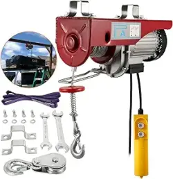 This light-duty, electric cable hoist can lift up to 39 feet in the air, allowing you to lift any load quickly and safely. The cable is made with high strength carbon steel.