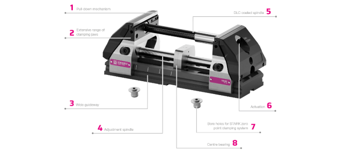 Guido Born, Product Manager at STARK Spannsystem GmbH, sums it up best: “Together with comprehensive accessories, the HILMA.UC 125 is a universal clamping system for workpieces of different sizes and geometries. So, one vise is enough instead of numerous systems, each with different jaw openings.”