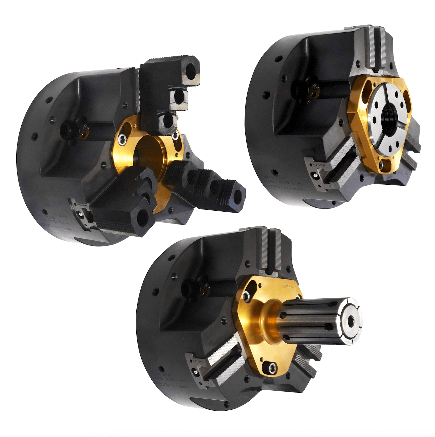 All Royal Multi-Tasking Chucks include the appropriate mounting plate, an internal work-stop, a central chip shield, and a custom-machined drawtube connector for fast, hassle-free installation.