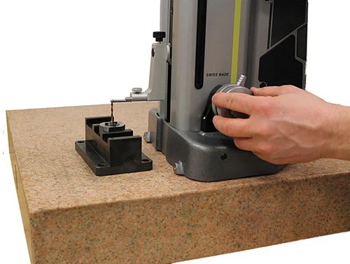 Offline measurement of cutting tools does not require any special equipment, as shown in this example using a presetting block from National Machine Products. (Provided by Tsugami/REM Sales)