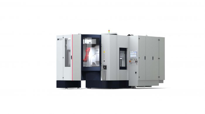 New Hudson, Michigan – Schwäbische Werkzeugmaschinen’s (SW) BA 322i is designed to function as an independent manufacturing cell that can store enough workpieces for an entire shift. This twin-spindle horizontal machining center produces twice the output while using less floor space and less energy. The BA W02 and BA 3 series are available with a loading module with an integrated 6-axis robot and vertical workpiece storage. SW’s double swivel carrier enables loading and unloading in parallel to machining time. The vertical workpiece storage is conveniently located to the side and has been trimmed down to require minimal space. The new BA 3 series features the monobloc design in combination with the box-in-box 3-axis unit, double swivel carrier and 1, 2 or 4 horizontal spindles with 300 mm spindle distance.