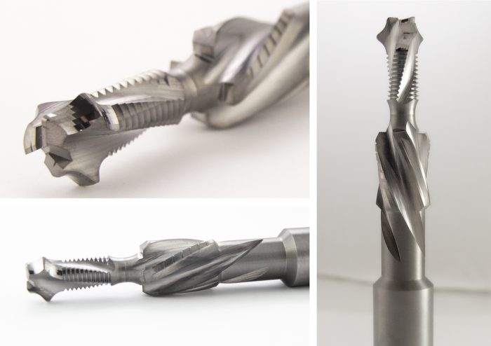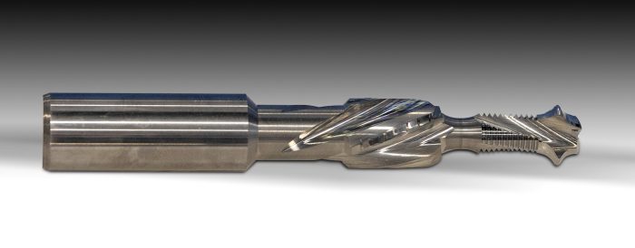 Montgomery described the tool process starting with the tip of the tool as a three-flute right-hand helix endmill with chip breakers, to help stop the tool from creating long chips. Next, it moves into a three-flute form radius cutter for form milling, then transitions into a threadmill. This can be used to create internal and external threads of different sizes. A concave spin grind was added to create relief for chip flow and ejections. Lastly, the back portion changes to a left-hand helix right hand cut reamer to change the forces down into the part to keep it stable in the fixture. Known as the “Fiver,” due to its multiple functions, Gray said that “ARCH Cutting Tools is a solution driven specialty tool company that provides solutions like this tool that cut down on the end users cost in tooling and cutting cost in production.”