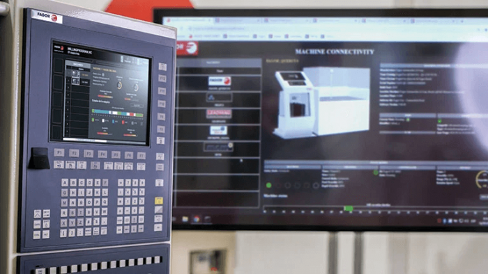 Fagor Automation Corp., Elk Grove Village, Illinois, is another control provider with its eye on the Industry 4.0 prize. Harsh Bibra, general manager for North America at Fagor, explained that its ARFS (Adaptive Real-time Feed and Speed) control does all this and more, but noted that this type of sensor-based technology can also be used for predictive maintenance.