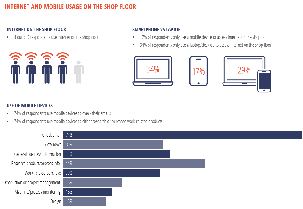 80% of our respondents use internet on the shop floor, whether that be on their mobile devices or a laptop.