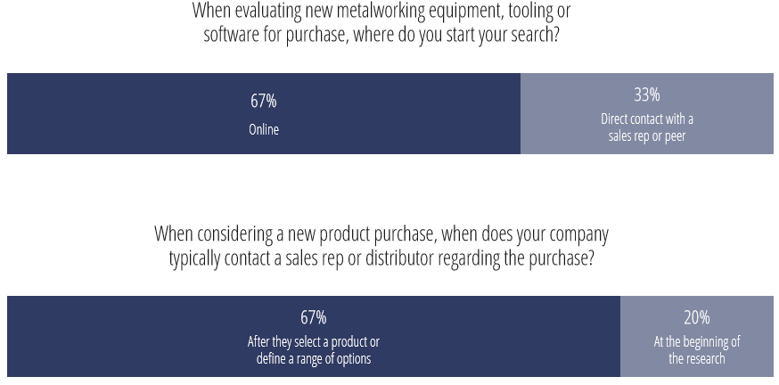 When participants were asked where their search for new metalworking equipment, tooling or software begins, a firm 66% claimed this phase begins online. It’s this online behavior by machinists we find particularly interesting.