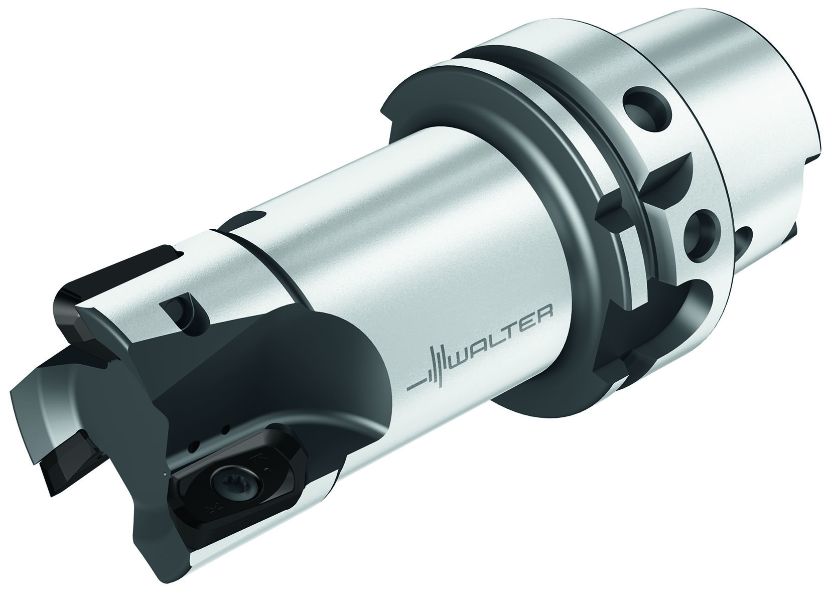 A good suite of tools from Walter for cutting commercially available titanium (Ti6Al4V, Ti 5-5-5-3, etc.), includes the M3255 tangential porcupine milling cutter, the M4002 high-feed face milling cutter (roughing operations), the Ti40 solid carbide end milling cutter, and the modular ConeFit variant with Ti50 changeable head (semi-finishing and finishing operations). Indexable inserts and solid carbide milling cutters help to maintain the balance in applications like this.
