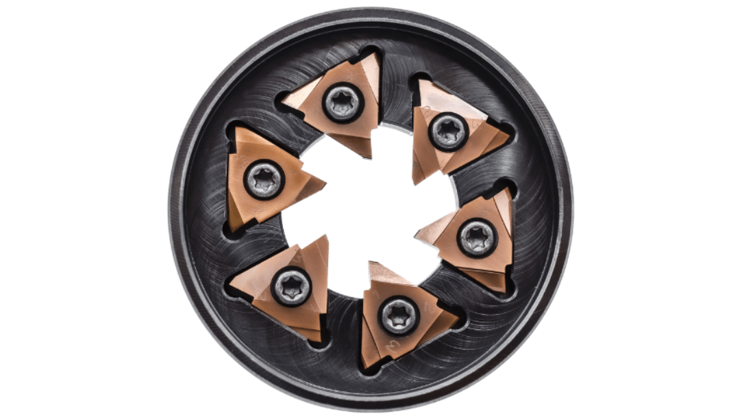 Definition: Thread-whirling inserts are carbide-inserted tools that are used in the thread-whirling process. Each insert typically features 2-3 cutting edges, that are fixtured within a holder or cartridge, and then spun around the part programmatically to produce the finished thread. The cutting edges are designed to create precise and accurate threads in various materials such as stainless steel, titanium, and Inconel.