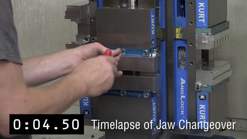 Jaw change time is reduced 90 percent to one minute, with jaw positioning repeatability of up to ±0.001”…