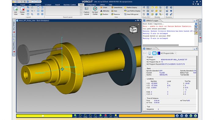 This is an important point. For those shops thinking about VERICUT but concerned about the amount of workholding and toolholder modeling necessary to exactly replicate the machining environment, Wardell said don’t be. He explained that he’ll sometimes draw a rough outline around non-standard tooling, “just enough to detect a collision,” and said he never did model the entire machine tool—only those areas where interference with a toolholder or fixture is a distinct possibility.