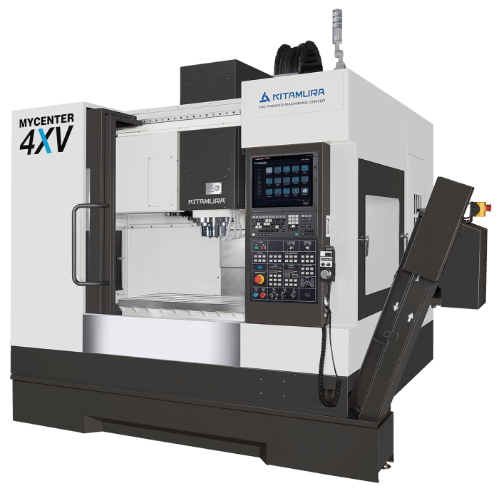 Kitamura Machinery, the premier manufacturer of precision horizontal, vertical and 5-axis machining centers, brings to market a new standard in VMC value – The Mycenter-4XV. Designed with the flexibility of today’s job shop in mind, they Mycenter-4XV is truly big on features and equipped with a 19.7” x 44.1” table and 40.2” x 20.1” x 20.1” X,Y,Z travels making it ideal for large single workpieces, multi-fixtured components or additional axes implementation. “Best in class” 40T ATC assures smooth and effortless tool changes and offers greater flexibility for a wider variety of jobs, boosting productivity and machining profits. A powerful, high speed, dual contact, 15,000rpm, 41 HP spindle system offers optimum rigidity and stiffness for demanding cutting conditions and handles hard-to-machine materials with ease.