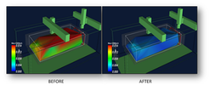 Volumetric Compensation is essentially an innovative method of assembling the volumetric map on a given machine. Up until now, a typical three axis machine has used the traditional 21 Error Parameter method to measure machine axis errors. Measurements were taken one at a time, along each individual axis, X, Y, and Z.