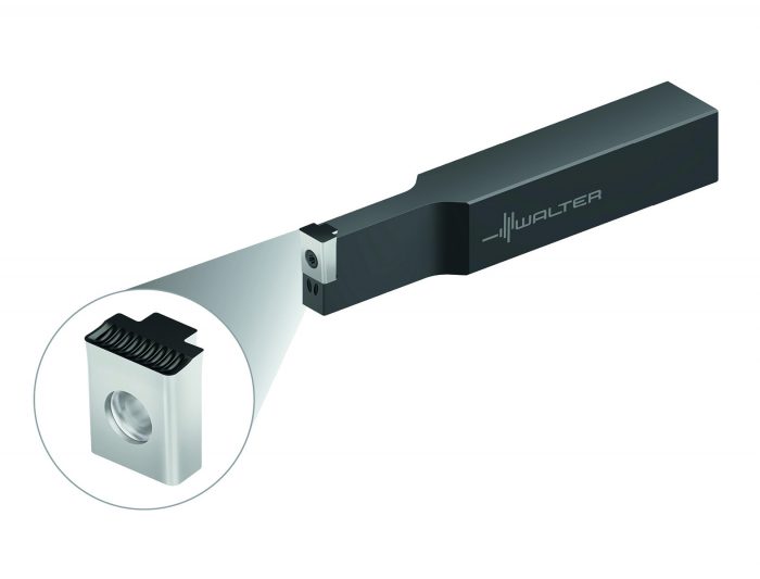 Waukesha, WI—Walter has introduced the Walter Cut G2016-P/ UX grooving system. This productive and economical new system delivers stable and process reliable performance in heavy machining and features high feed rates of 0.008-0.024 in. (0.2-0.6 mm). The system maximizes tool uptime with its simple-to-operate tangential-clamping mechanism for fast replacement of cutting edges.