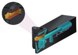 Inserts are available for grooving widths of 2.5, 3.0, 4.0, 5.0 and 6.0 mm. Indexable insert clamping can be operated from both sides. For optimum tool stability, there are two grooving depths of 12 and 21 mm. The corresponding toolholder shank sizes are 0.625 in., 0.750 in. and 1 in. as well as 16×16 mm, 20×20 mm and 25×25 mm.