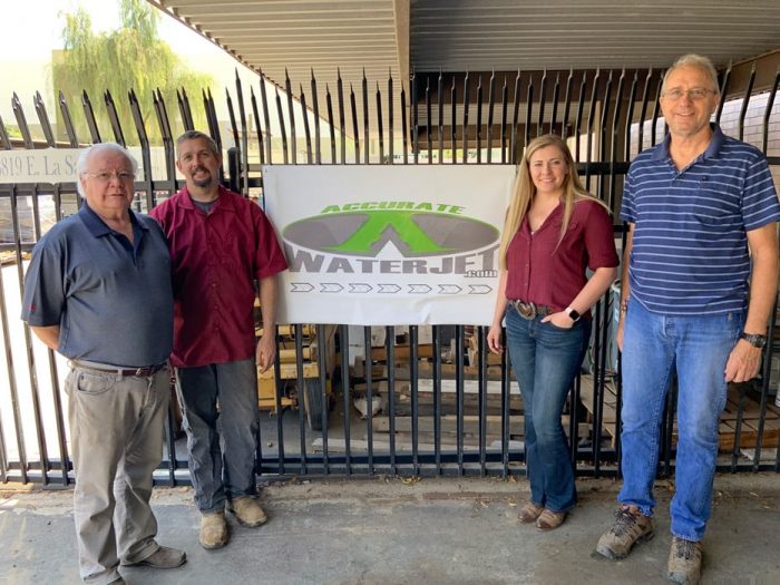 The team at Accurate Waterjet that manages the project for USA Luge includes, from left, Ron Marusiak, Jeff Sims, Melinda Mace, and Arnie Lytle.