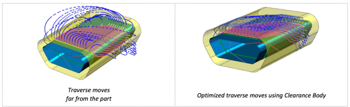 The Clearance Body is a new technique that uses a surface or a solid body as a clearance plane, ensuring that the traverse moves of multi-axis additive operations stay closer to the part.