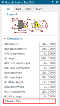 The Tolerance Class field has been added to the dialog of reamers and boring bars, enabling better alignment with tool vendor data. You can leverage this information for Feature-Based Machining.