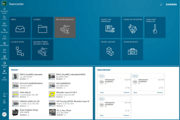 In the Recent and Discussions tabs, explore quick access to the recently used objects and an overview of ongoing discussions with your colleagues. In the Recent tab, view objects in progress for swift access to important tasks. Meanwhile, the Discussions tab offers an overview of parts collaboratively worked on with colleagues, allowing you to share comments and suggested changes across your organization.