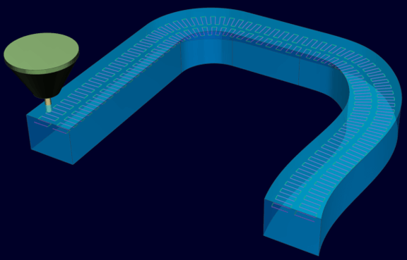 The latest Morph Across operation is supported for back-and-forth and short zig-zag motions, particularly favored for Wire Arc Additive Manufacturing (WAAM) and ring-shaped parts compared to circular racetrack motions. This operation automatically detects a drive curve, produces output across that curve, and allows for splits to maintain the specified minimum & maximum stepover range.