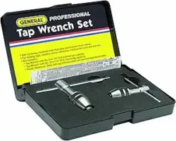 This tap wrench set features self-centering hardened steel jaws and a knurled chuck sleeve to support a sturdy grip. This set even comes with a reference chart and fitted, foam lined plastic case for protection.