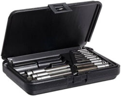Walton Tools really paved the way with dedicated tools for extracting broken taps. They offer a variety of tap extractor sets. This one features extractors to support taps with a four-flute design and there are even replacement flutes available should they get damaged. This 13-piece set contains sizes #4 (3-flute), #5 (3-flute), #6 (3-flute) #8, #10, #12, 1/4″, 5/16″, 3/8″, 7/16″, 1/2″, 5/8″, 3/4″.