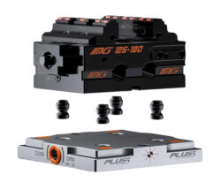 Wheeling, IL – SMW Autoblok, a world leader in the design and manufacture of rotational chucks, stationary workholding, tooling and custom engineered solutions for the machine tool industry, introduces the new and unique PLUS5 V5 Zero Point Vise system. The PLUS5 V5 locks and unlocks pins with only 180o rotation. Omnidirectional clamping ensures uniformity while performing precision, all-directional, clamping. This zero-point vise interfaces with all industry-standard products using 52mm or 96mm pin spacing, allowing it to easily become part of your existing workholding system.